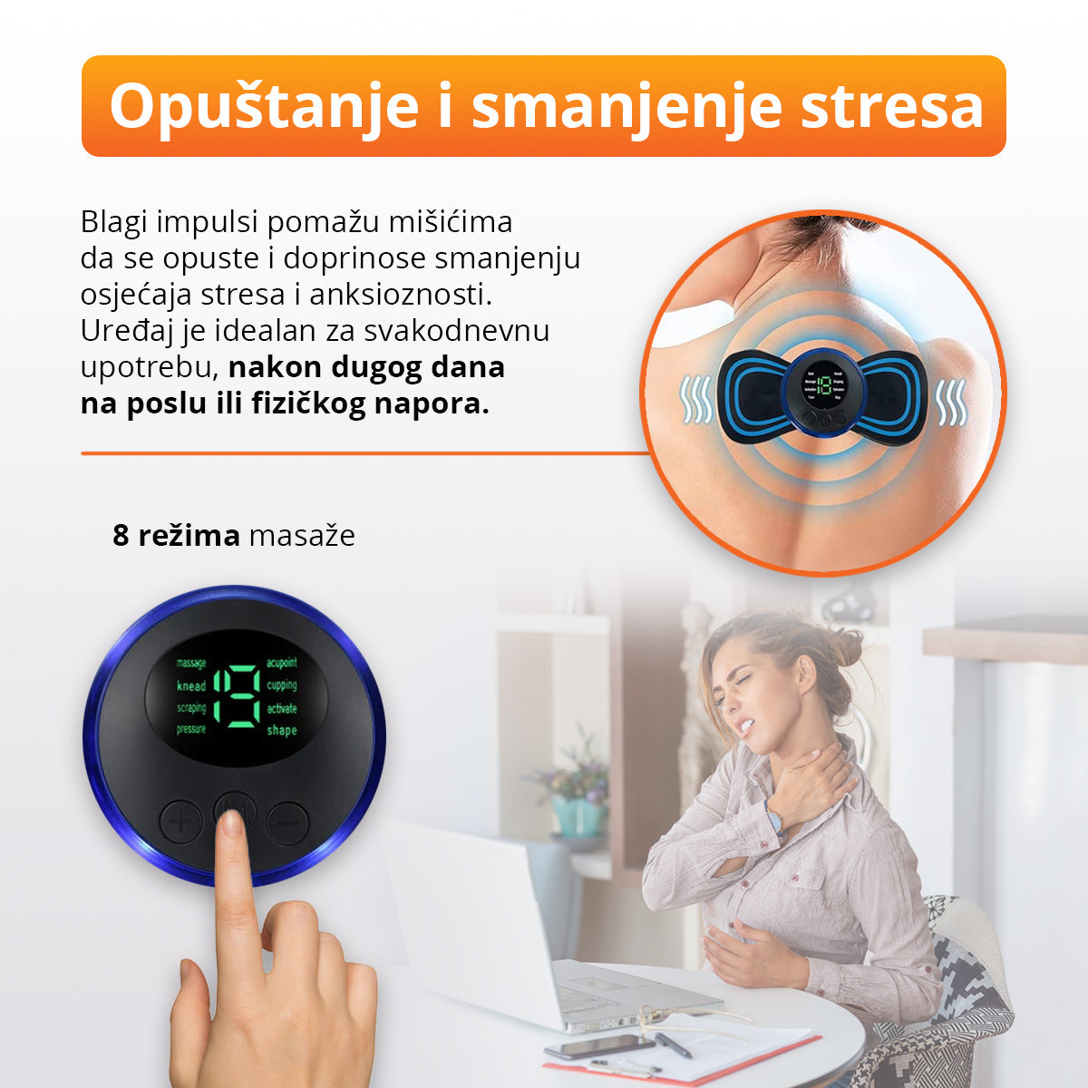 ✔Tecnología de Pulso EMS – Entrega impulsos eléctricos para relajar los músculos y aliviar la tensión.