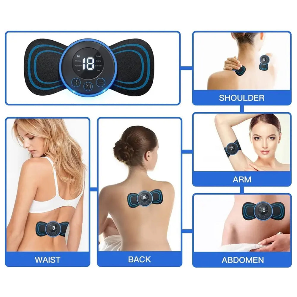 El Massager Mini Butterfly es un estimulador muscular ligero y portátil diseñado para proporcionar un alivio del dolor suave pero efectivo y relajación. Utilizando tecnología de pulso eléctrico (tecnología EMS), este dispositivo ayuda a calmar los músculos doloridos, mejorar la circulación y reducir la tensión en áreas específicas como el cuello, hombros, brazos, piernas y espalda.
