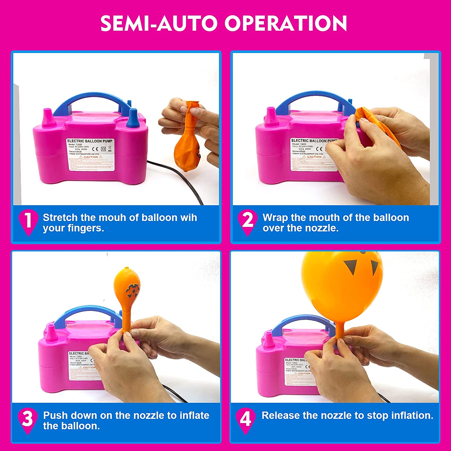 Capacidad: Doble boquilla para inflar 2 globos a la vez.
